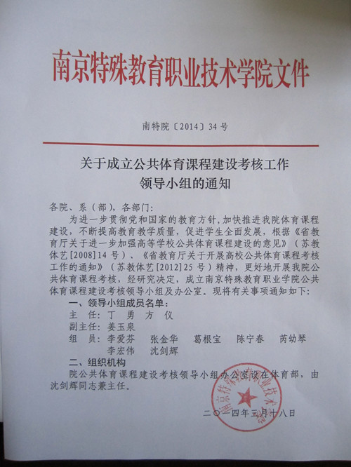 关于成立公共体育课程建设考核工作领导小组的通知