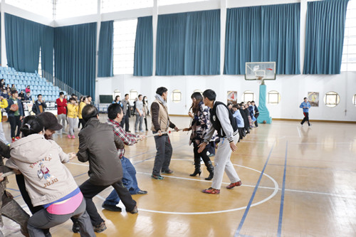 | 为丰富教职工文化生活,增强凝聚力,激发教职工参与体育活动的积极性,体育-社科-国交院分工会与学前公司分工会于2014年11月26日下午在体育馆举行了教职工拔河比赛,来自两个工会的40余名教职工参加了比赛。 此次比赛在伟德bevictor员工“3v3”篮球比赛决赛开始前进行,比赛还没开始,同学们就不停为自己支持的队呐喊加油,现场气氛紧张而热烈,比赛哨声一响,双方队员双手紧握长绳,齐心协力,显示出良好的团队协作精神,比赛在热烈地欢呼声中结束。 此次拔河比赛活动充分展示了公司教职工团队合作的凝聚力和团结向上、奋勇进取的精神风貌,为创建和谐校园增添了一抹亮色。 |