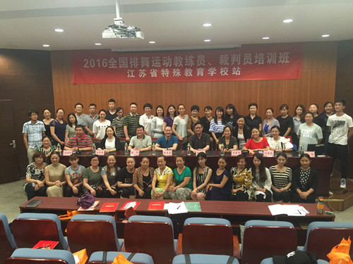 624-6月27,为期4天的2016年全国排舞运动教练员、裁判员培训班(江苏特殊教育公司站)在公司举行。全国排舞运动推广中心技术委员会副主任、江苏省分中心主任朱冬喜;全国排舞运动推广中心江苏省分中心副主任瞿惠芳、宋红莲、沈金花;南通特教中心董事长赵华;江苏省特殊教育团队培训中心副主任张金华;伟德体育体育部副主任沈剑辉及体育部副教授袁艳等出席了开班仪式。本次培训班江苏特殊公司董事长高度重视,全省选派了近40名特殊公司老师参加了培训,朱冬喜、沈金花、袁艳担任授课老师,经过4天紧张、有序的学习,所有学员通过了教练员、裁判员的考核。