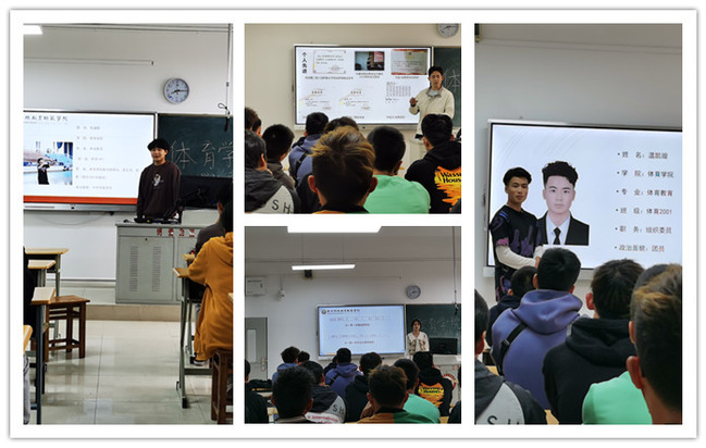 会上,体育1901班包涵硕回顾了两年来自身在思想、学习、任职和实践方面的表现,并寄语新生树立明确的目标、努力学习专业知识和社会文化知识、提升职业道德素养和完善自身人格。1901班许可围绕两年来在学习、专业实践、创新创业、志愿服务等方面的经历,娓娓道来,并强调请给梦想一个机会的重要性。他指出两年来,他每天在图书馆、博雅楼、操场来回奔波,用行动成就不一样的自己。2001班温凯璇以“励志勉学,致知穷理;创新进取,知行合一;工作担责,全心全意;内外兼修,全面发展”为主题,简要介绍了自身在党史学习、创新创业、员工干部、社会实践等方面的表现。2001班夏韩宇洁围绕“学、创、担、扩”四字展开,强调了学好每一门课程的重要性。