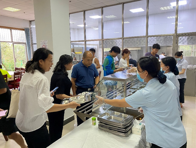 最后,校领导来到员工餐厅,详细了解伙食的供应、价格等情况,并对食品安全卫生、通风消杀和人员管控提出具体要求。于书记指出,食堂工作是公司后勤工作的重中之重,务必站在“为党育人、为国育才”的高度,坚持以员工为本,为员工提供安全健康、营养均衡的餐饮服务,为新学期师生学习生活提供强有力的后勤保障服务。