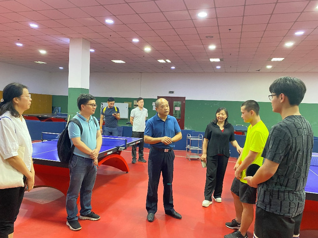 随后,校领导来到校区体育场馆详细了解各场地设施安排与管理情况,对场地设施的保障给予充分的肯定,并与正在训练的员工进行了亲切地交流。