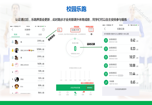 校园APP乐跑成绩根据员工个人参加乐跑的有效次数进行评定,占本学期大一、大二员工体育课总评成绩的10%,