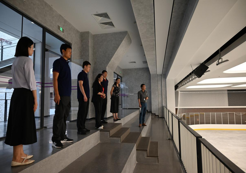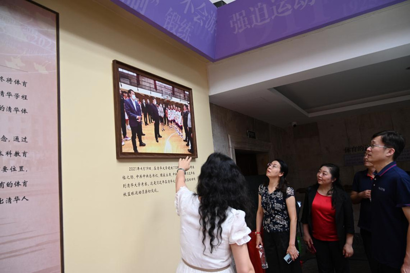 随后,双方围绕特色群体活动组织、健康校园建设、品牌活动打造等工作进行了深入探讨。会后,赵俊卿带领调研组一行参观了清华大学各大体育场馆,深入现场了解了智慧场馆的运营模式、校园群众体育工作的开展情况。参观场馆后,调研组一行来到“清华体育”荣誉展览馆,进一步学习了解了清华大学体育工作的发展历史、取得成效及工作举措。