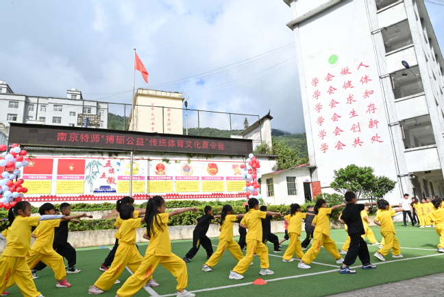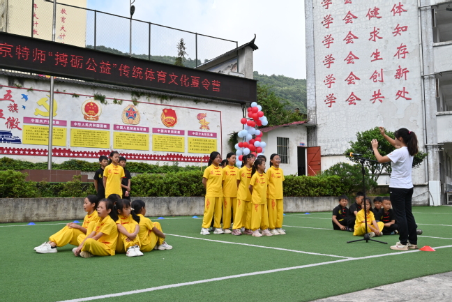 谢军老师在发言中全面回顾了夏令营开营12天来的难忘历程,对小新街乡中心小学为公司师范生提供锻炼专业技能、展现才华的平台表示感谢,对南京阳光心汇心基金会大力支持表示感谢。他说,结营并非结束,未来可期!希望“搏砺公益”的志愿者们继续在繁荣发展少数民族传统体育、传承发扬优秀传统文化、促进民族交流、助力乡村振兴的道路上行稳致远!