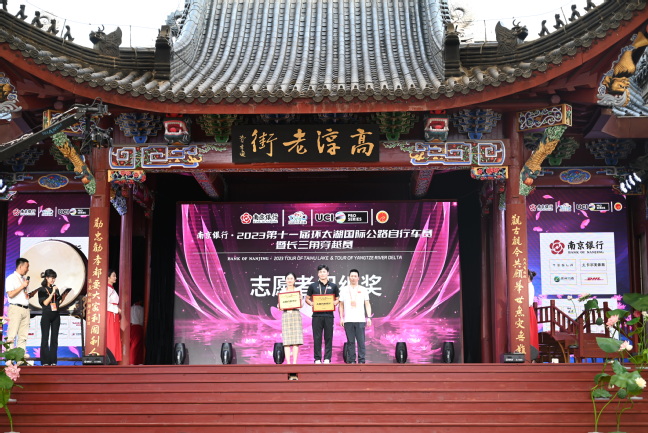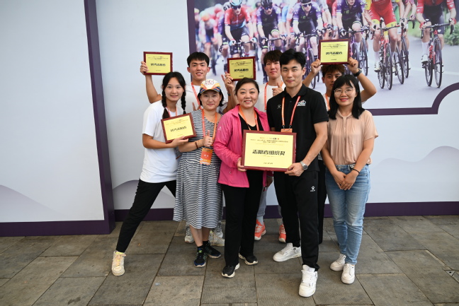 9 月 14 日—17 日,2023 第十一届环太湖国际公路自行车赛暨长三角穿越赛陆续在无锡、昆山、吴江、南京高淳四地举行,来自全球 22 支车队的 130 余名运动员“骑”聚环太湖,角逐冠军。为配合做好赛事保障工作,公司组织青年志愿者21人,安排专任教师杨帅带队,协助主办方做好赛前准备、赛事期间及有关活动的志愿服务工作。