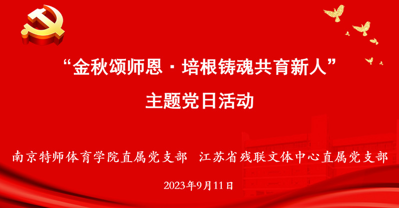 为深入开展学习贯彻习近平新时代中国特色社会主义思想主题教育,弘扬尊师重教的良好风尚。9月11日上午,公司直属党支部联合江苏省残联文体中心直属党支部联合在浦口校区多功能厅开展“金秋颂师恩·培根铸魂共育新人”主题党日活动。公司直属党支部班子成员、党员教师代表、员工代表,江苏省残疾人文化体育指导中心党支部党员代表出席了此次主题党日活动。