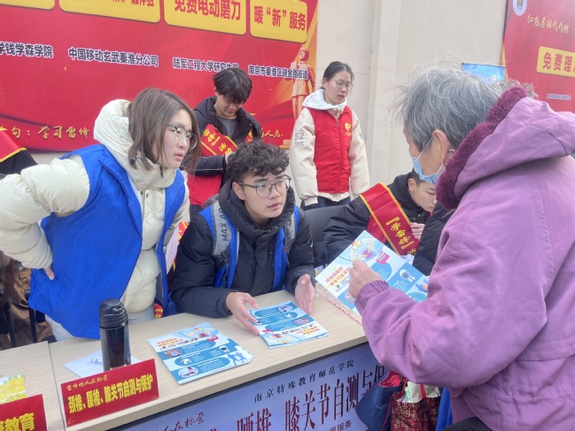服务主要内容是颈椎、腰椎、膝关节的自测与保护。伟德bevictor8名志愿者结合《运动损伤与康复》专业学习,通过颈部前伸、高低肩、骨盆倾斜、胸椎后凸角、腰椎前凸角、膝关节Q角、双侧腿对称、足弓塌陷、人体重心偏移、脊柱侧弯等指标,帮助前来咨询的老年人、青少年进行测试,以此判断他们颈椎等部位的健康情况。同时,志愿者通过发放宣传单,进一步提升老年人、青少年对颈椎、腰椎、膝关节的保护意识。