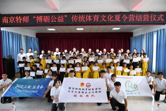 南京特师纪委书记于林惠在讲话中全面回顾了夏令营开营12天来的难忘历程,对清油河希望小学为公司师范生提供锻炼专业技能、展现才华的平台表示感谢,对南京阳光心汇心基金会大力支持表示感谢。同时对全体志愿者与全体学员分别提出了希望:一是“读万卷书,不如行万里路”。希望全体志愿者继续深入学习宣传贯彻习近平新时代中国特色社会主义思想,上好与现实相结合的“大思政课”,坚定信念听党话、跟党走,在社会课堂中“受教育、长才干、作贡献”,不断提升社会化能力。二是“学以致用,以知促行”。希望全体夏令营学员把在这次夏令营中学习的知识,习得的本领,比如孕育深厚儒家思想、道法精神以及释家修养的中国传统武术美德等融入和运用到生活中去。