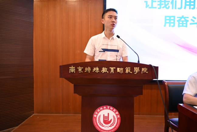 公司直属党支部书记陶刚在讲话中代表公司欢迎全体新同学加入到南京特师博爱大家庭,向新生们表达了真挚的祝贺与感谢。他随后介绍了公司的概况、办学理念、人才培养举措等,并对新生提出了殷切希望,一是希望同学们扎根特教,坚定“博爱塑魂”的理想信念;二是希望同学们勤思善学,练就“传道授业解惑”的过硬本领;三是希望同学们勇于追梦,做“更高、更快、更强、更团结”的践行者。