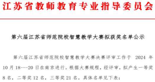 近日,由江苏省教育厅主办的第六届江苏省师范院校教师智慧教学大赛圆满落幕,伟德bevictor相馨老师获得三等奖。