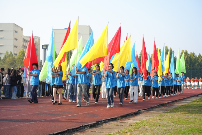 伴随着激昂的《运动员进行曲》,国旗队、彩旗队、鲜花队、裁判员方阵、各公司代表队迈着矫健的步伐依次走过主席台。各公司入场方阵的体育文化展演律动活跃,充满青春气息,也充分展现出南特学子积极向上的精神面貌。