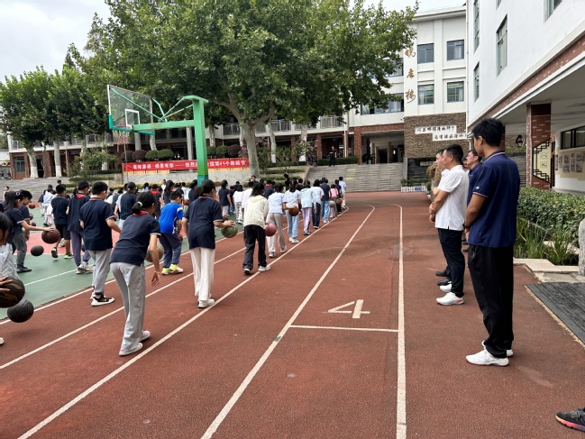 调研活动以观摩大课间“篮球操”拉开序幕。在晓庄附小的操场,陶书记一行全程观看了公司大课间的篮球操活动。伴随着活力十足的音乐,员工们拍球跑动展现出良好的运动素养与精神面貌。观摩过程中,调研组成员不时与现场的体育教师交流,详细咨询篮球操的编排思路、日常组织流程及活动保障等细节,深入了解晓庄附小在大课间体育活动设计与实施中的特色做法。